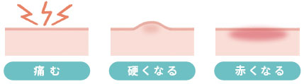 注射をした部位の痛み、発赤、かゆみ、内出血や腫れなどが生じる場合があります。また、注射した部位が硬くなる場合もあります。