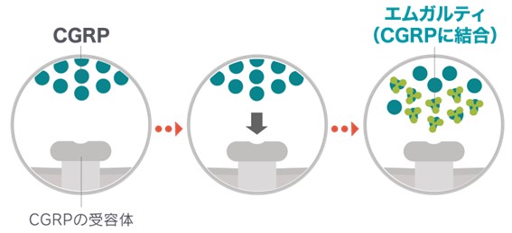 片頭痛は、「CGRP」という物質が脳の血管に作用して起こるとされています。
